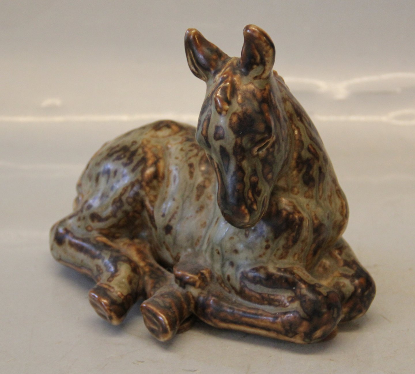Beskrivelse: Royal Copenhagen stentøjshest 21516 Liggende Føl 16 x 20 cm Knud Kyhn KK 1. I fin og hel stand