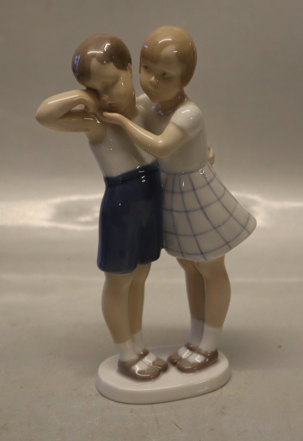 : Bing & Grøndahl B&G 2182 Pige trøster dreng 18,5 cm. . I fin og hel stand