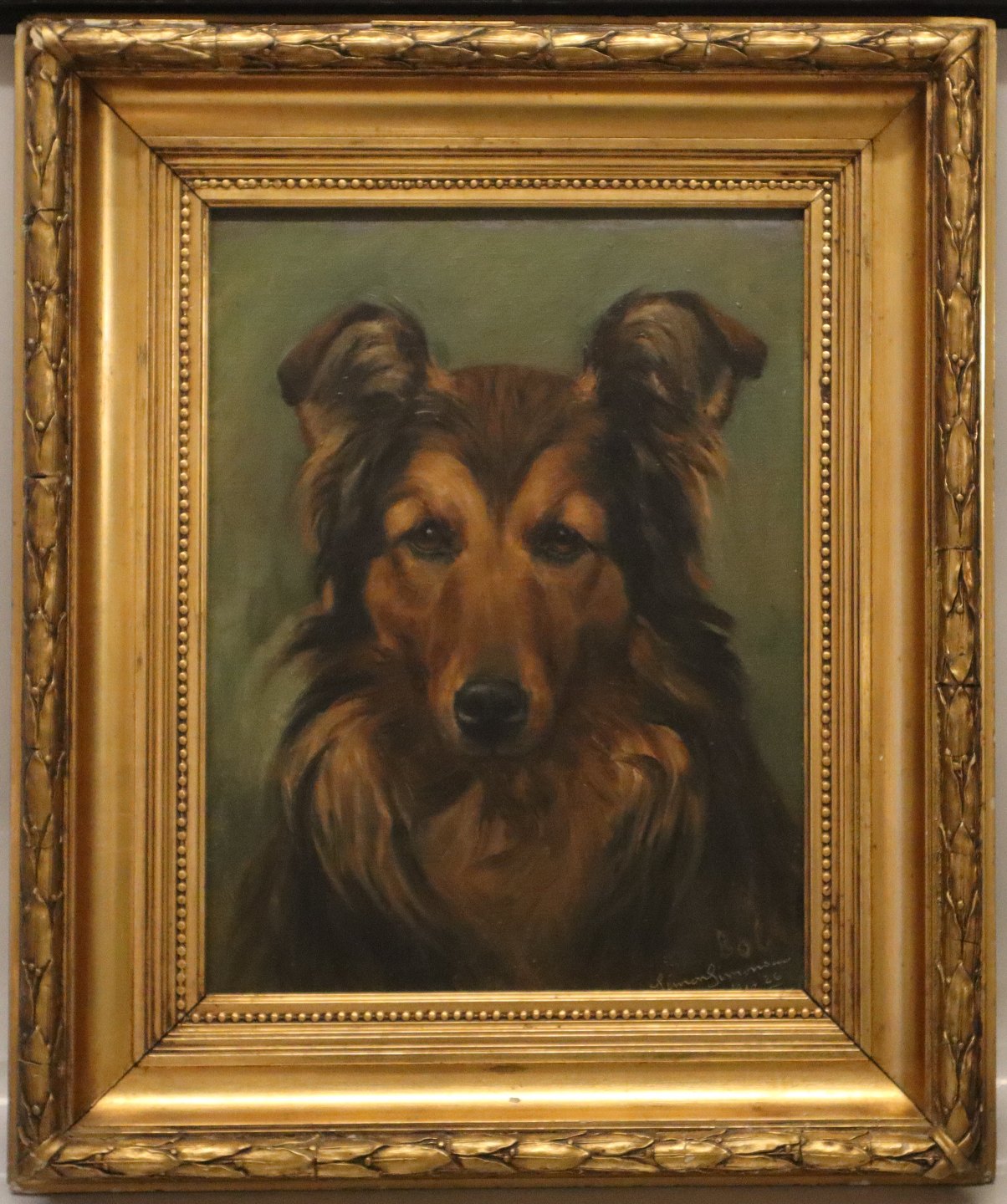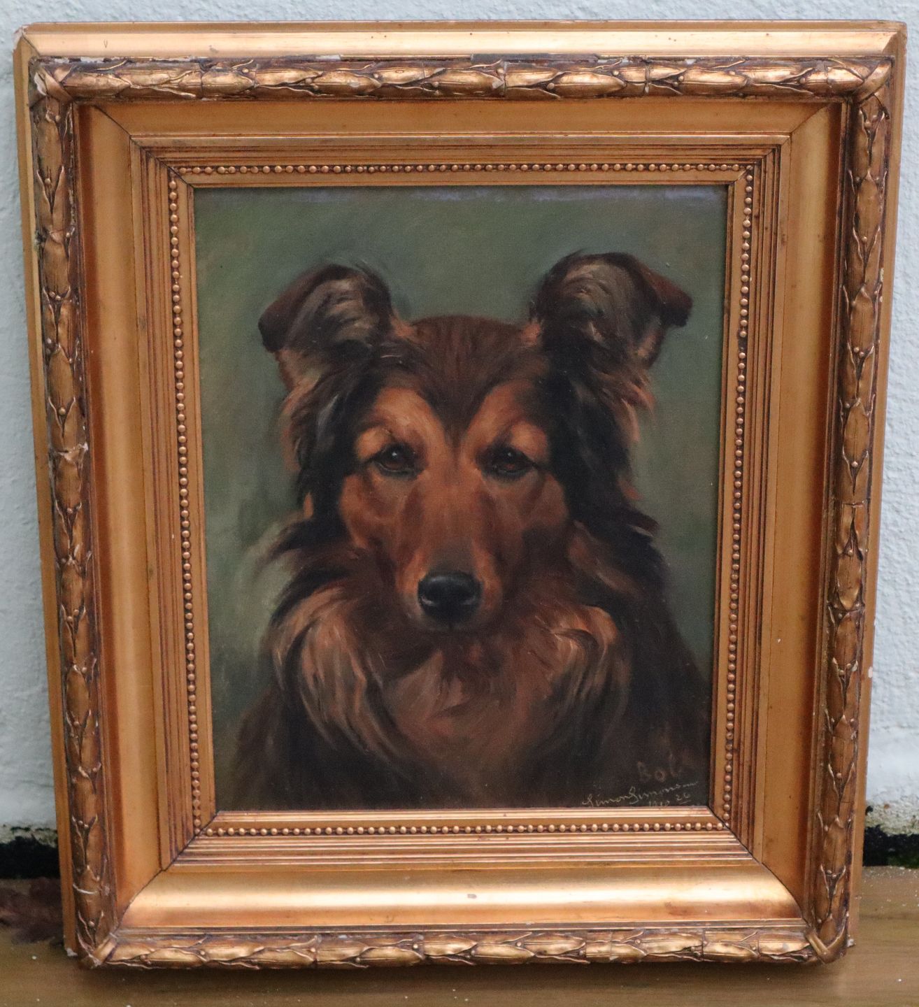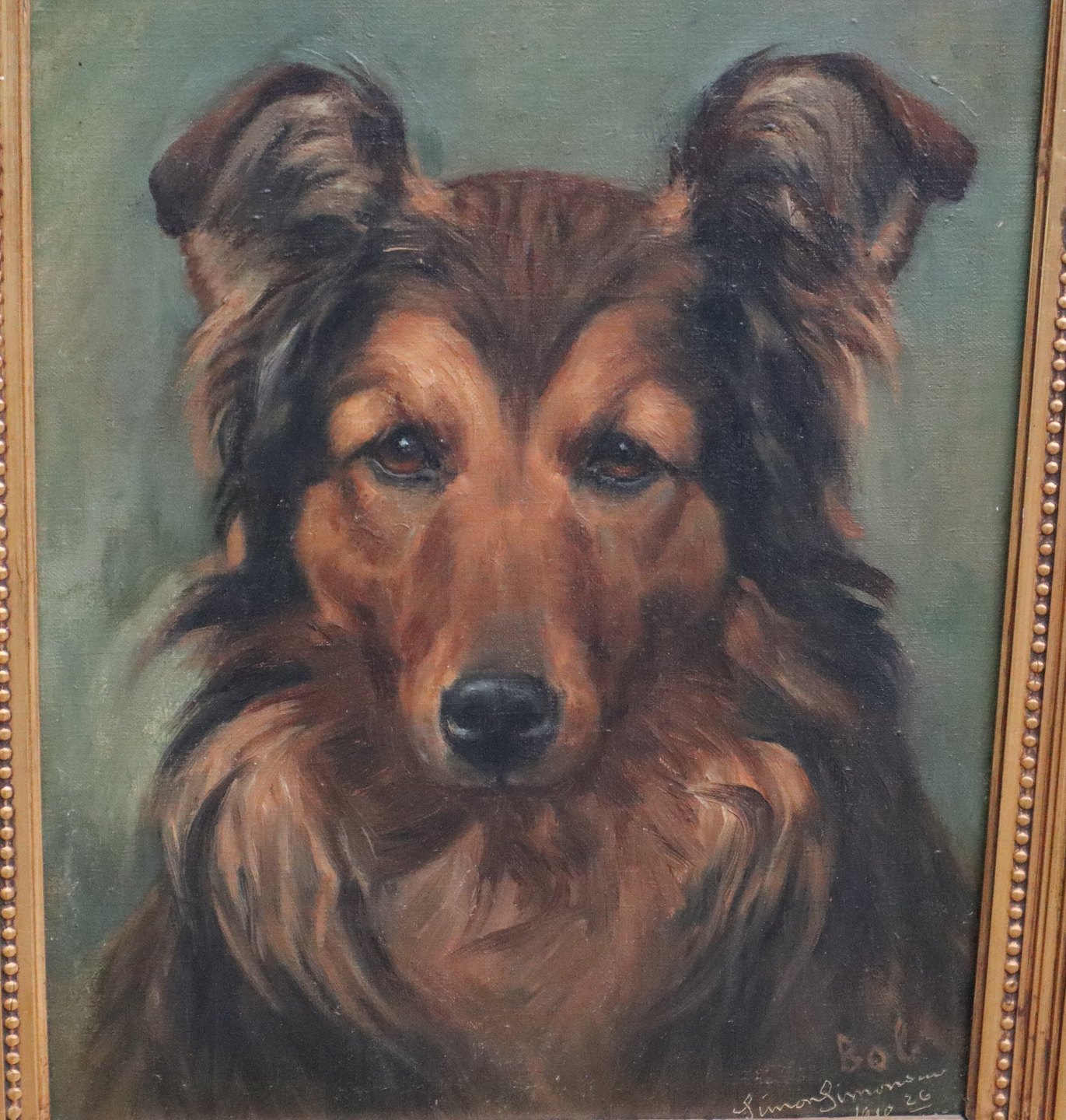 Hundemaleri: Border Collie Signeret BOB Simon Simonsen 1910 26 Olie på lærred 49 x 41 cm