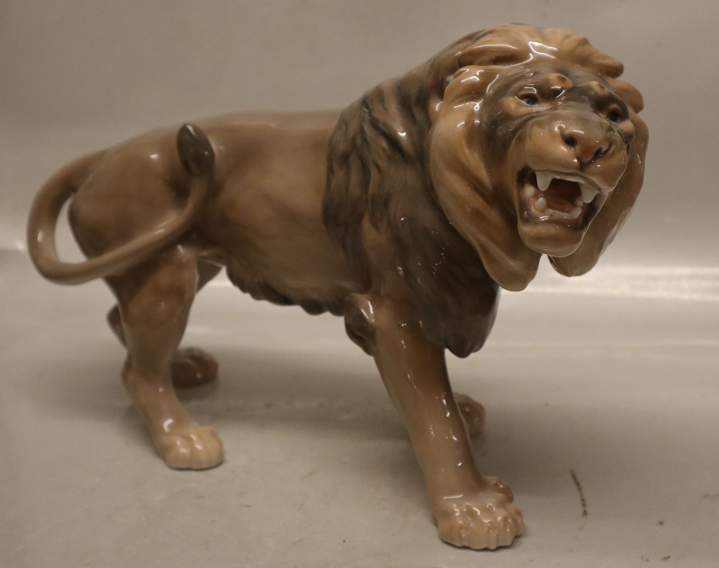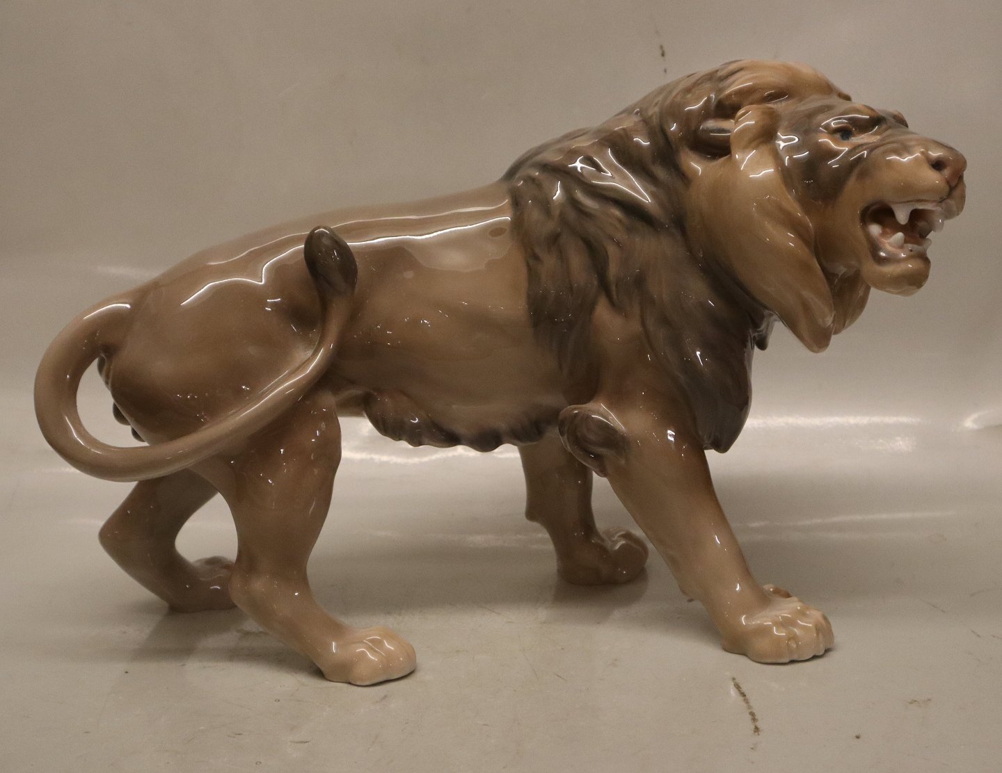Description: Bing and Grondahl Huge Wild Cat 2052 Lion 24 x 36 cm Marked with the three Royal Towers of Copenhagen. In mint and nice condition Bing & Groendahl porcelain