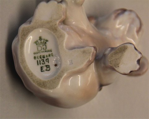 Beskrivelse: Dahl Jensen hund.1139 Engelsk bulldog hvalp (DJ) 7 cm Mærket med kongelig krone og DJ Copenhagen i hel og fin stand. 1. sortering