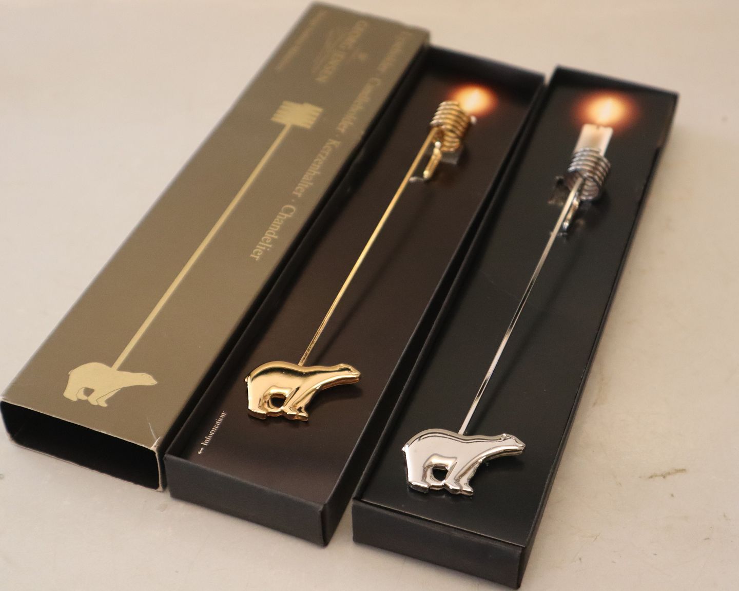 Isbjørne Georg Jensen Forgyldte og forsølvede Lyseholder til julelys