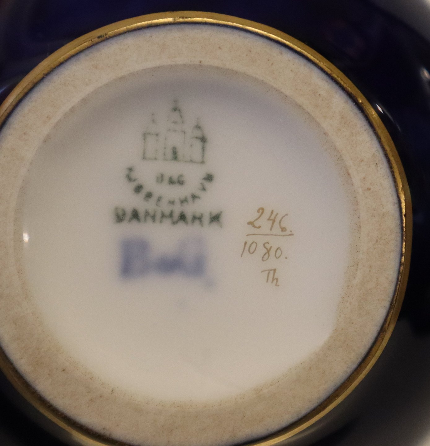 : B&G 246-1080 Dybblå vase med guld 13.5 cm Bing & Grøndahl I fin og hel stand.