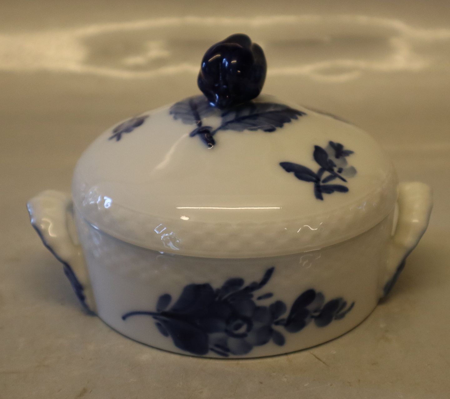 8139-10 Sukerdåse med låg 9 x 14 cm Kongelig Dansk Porcelæn Blå Blomst Flettet