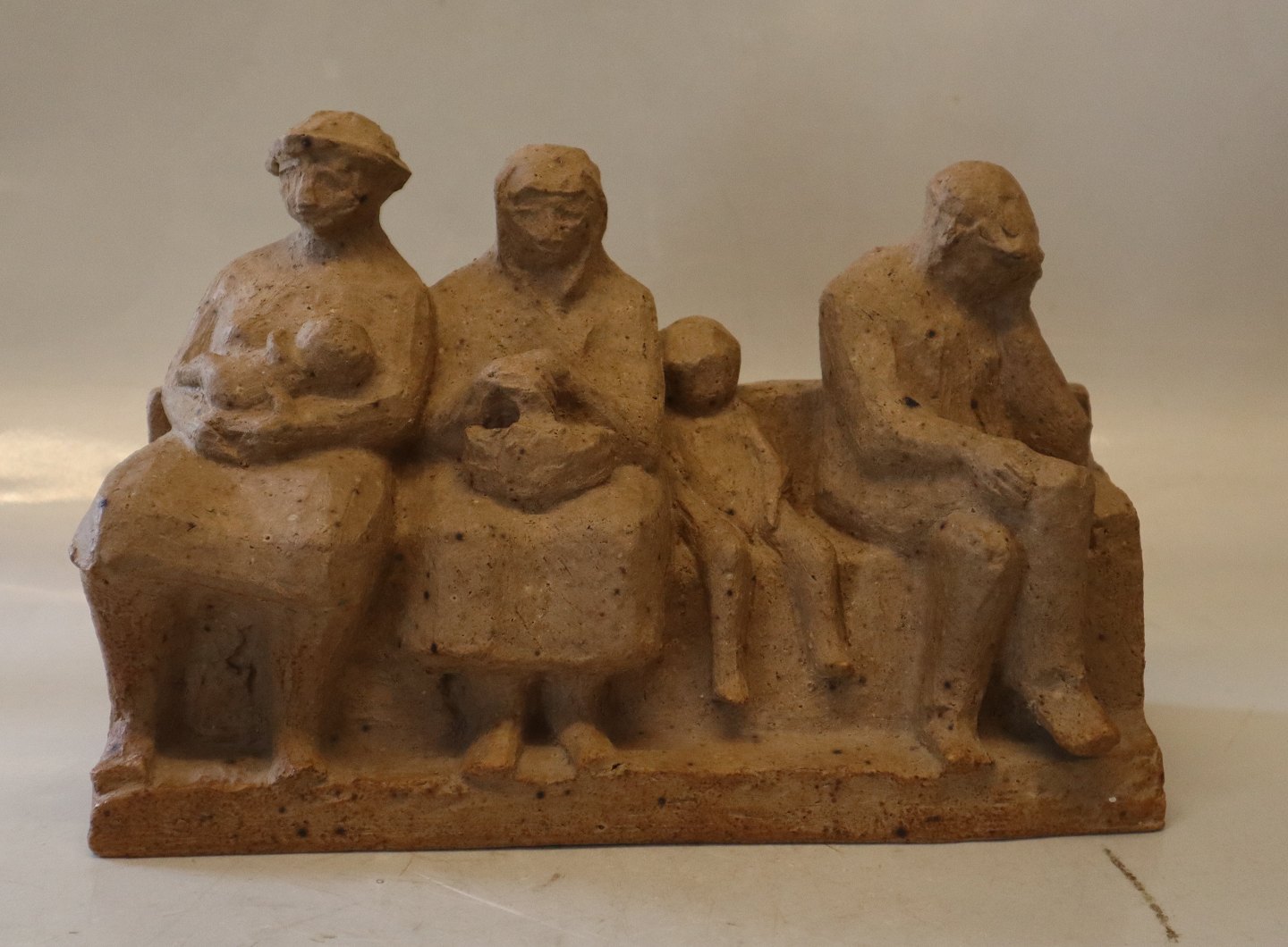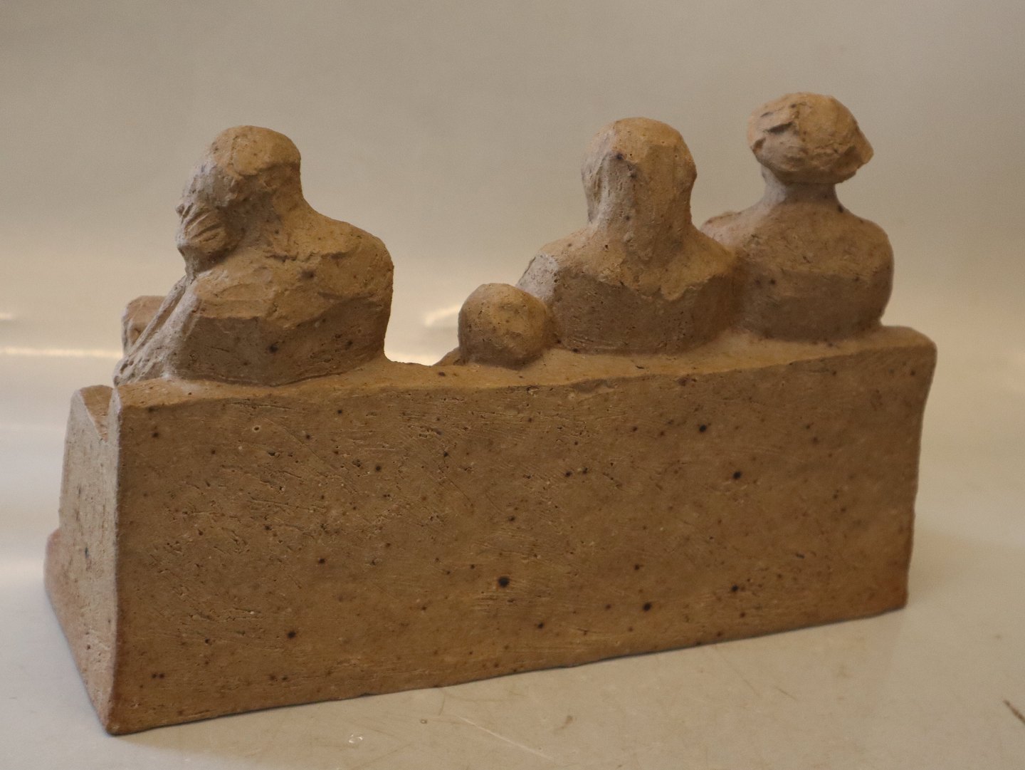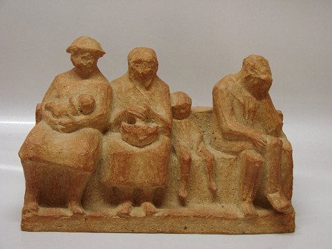 Dansk Stentøjs skulptur 7218 Folk på en bænk 17 x 27 cm Tove Olafsson 1909-1992