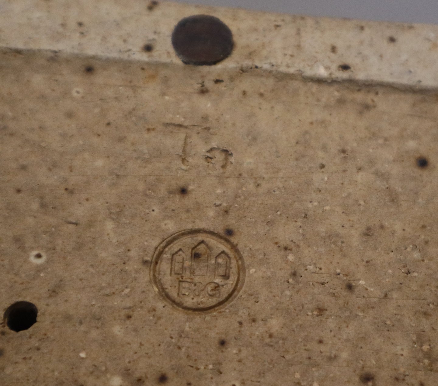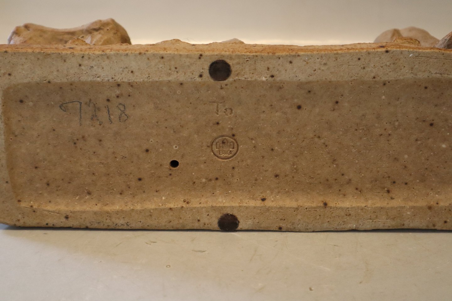 Beskrivelse: Bing Grondahl uglasseret stentøj 7218 Folk på en bænk 17 x 27 cm. 1670-2 I fin og hel stand Terrakotta