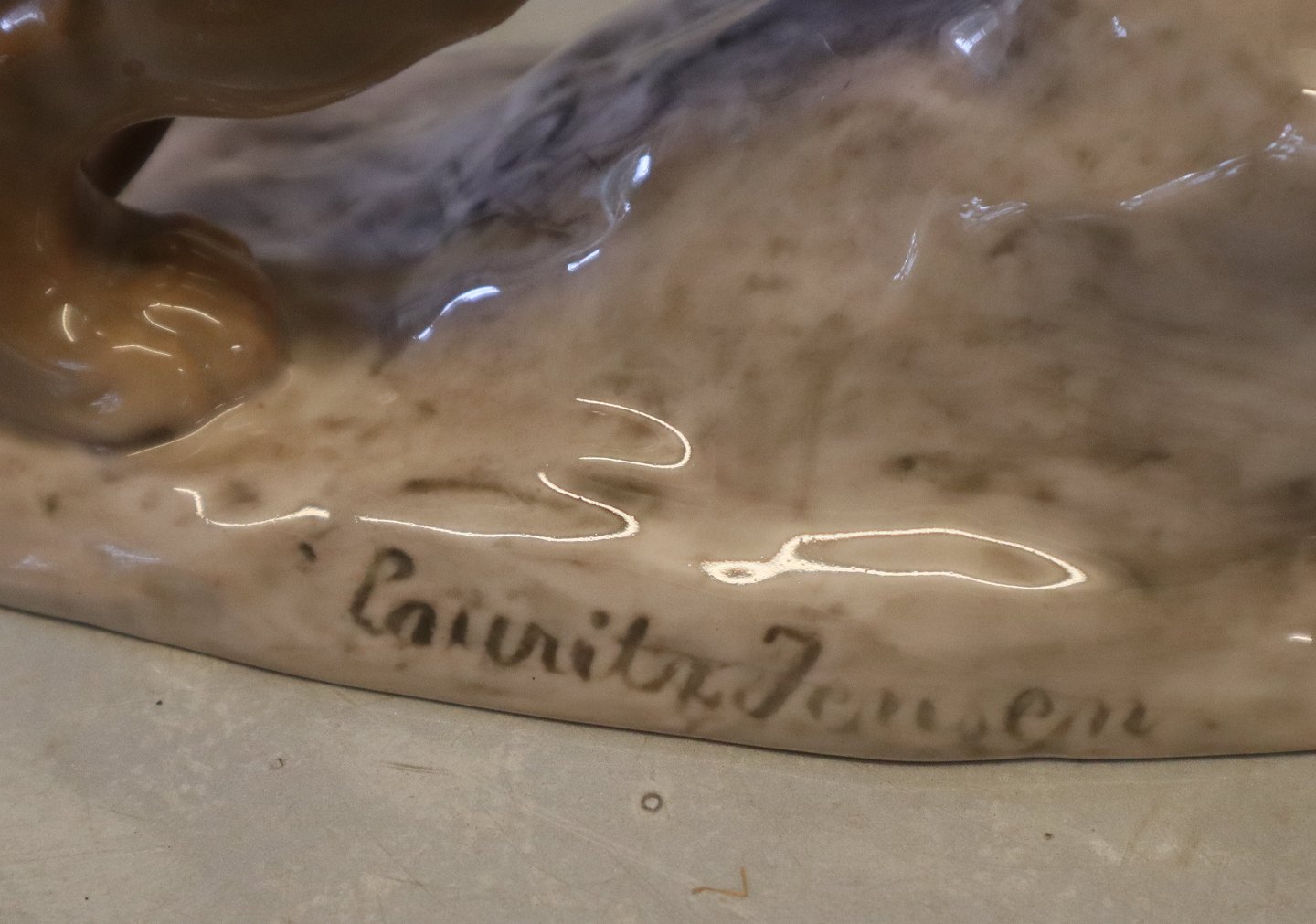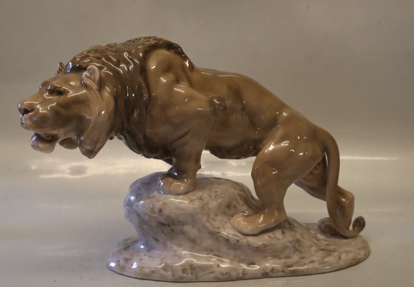 Bing & Grøndahl B&G 2057 hanløve på klippe Lauritz Jensen 20 x 25 cm I fin og hel stand.