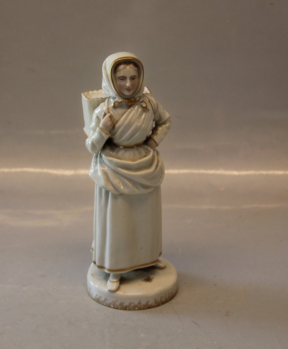 Beskrivelse: Bing & Grøndahl B&G Antik Kone med kurv 17 CM I fin og hel stand. Stemplet B&G før 1890 Fiskerkone fra Skovshoved? Skovserpige BG 1855-1880