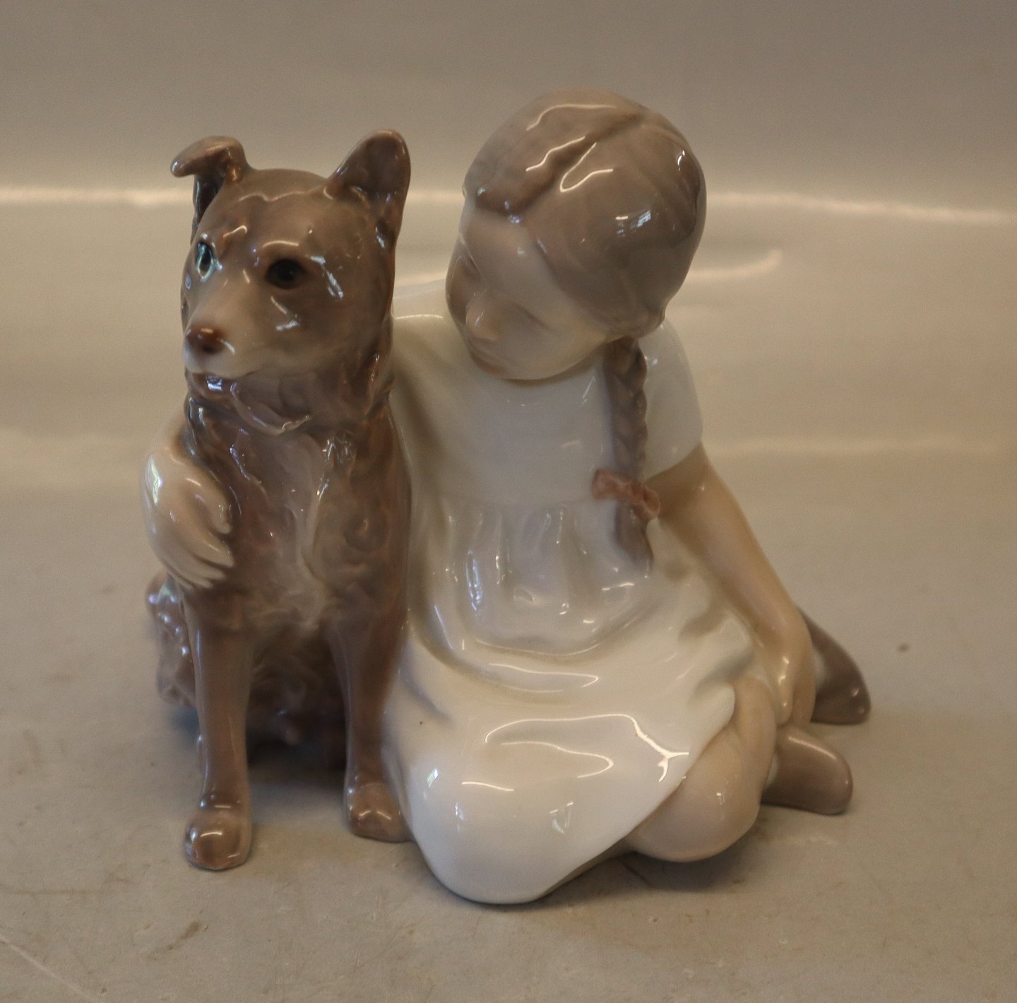 B&G figur 1973 Pige med fletninger og hendes hund 12 x 15 cm