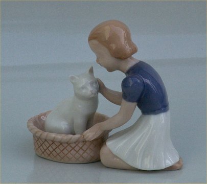 Beskrivelse: Bing & Grøndahl B&G 2249 Pige med kat 10 cm "Gode venner" Claire Weiss I fin og hel stand.