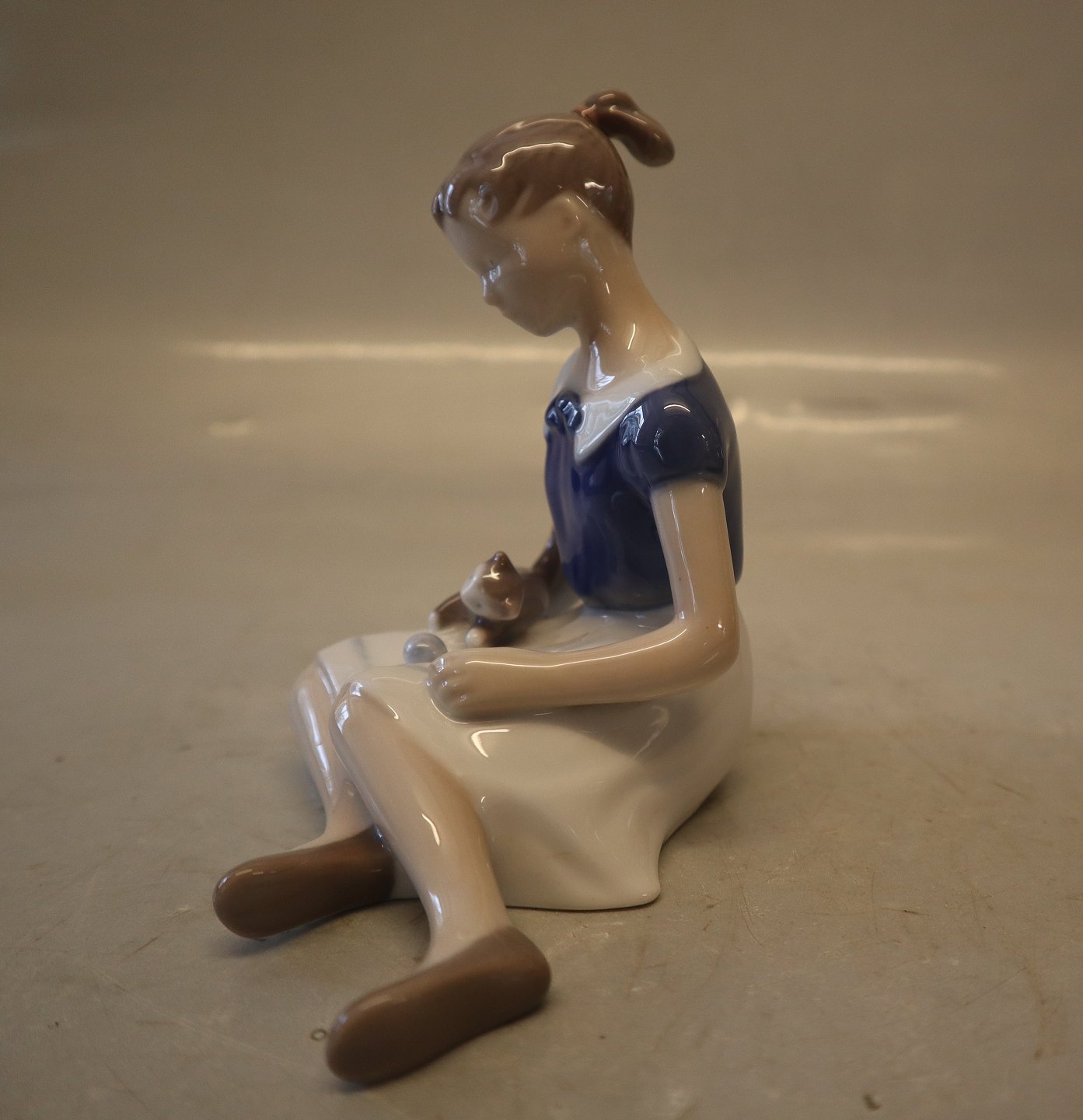 B&G 2329 'Birgite' Pige med kat 13 cm, Vita Thymann 1958 Bing & Grøndahl