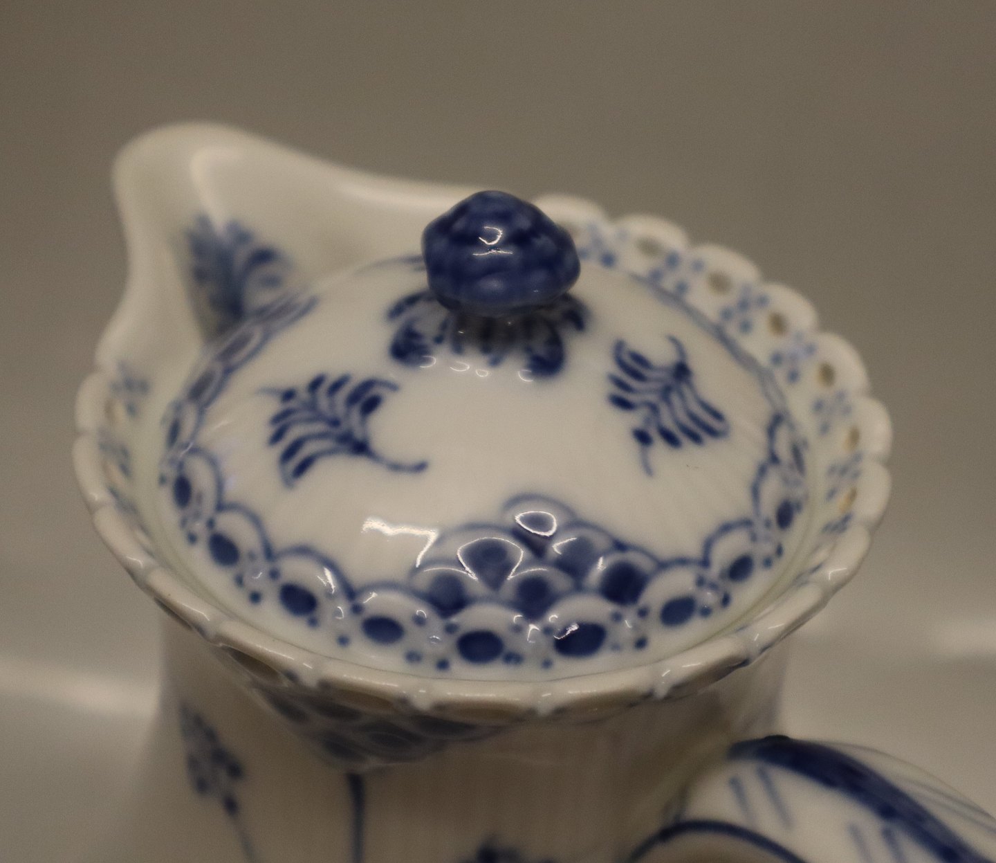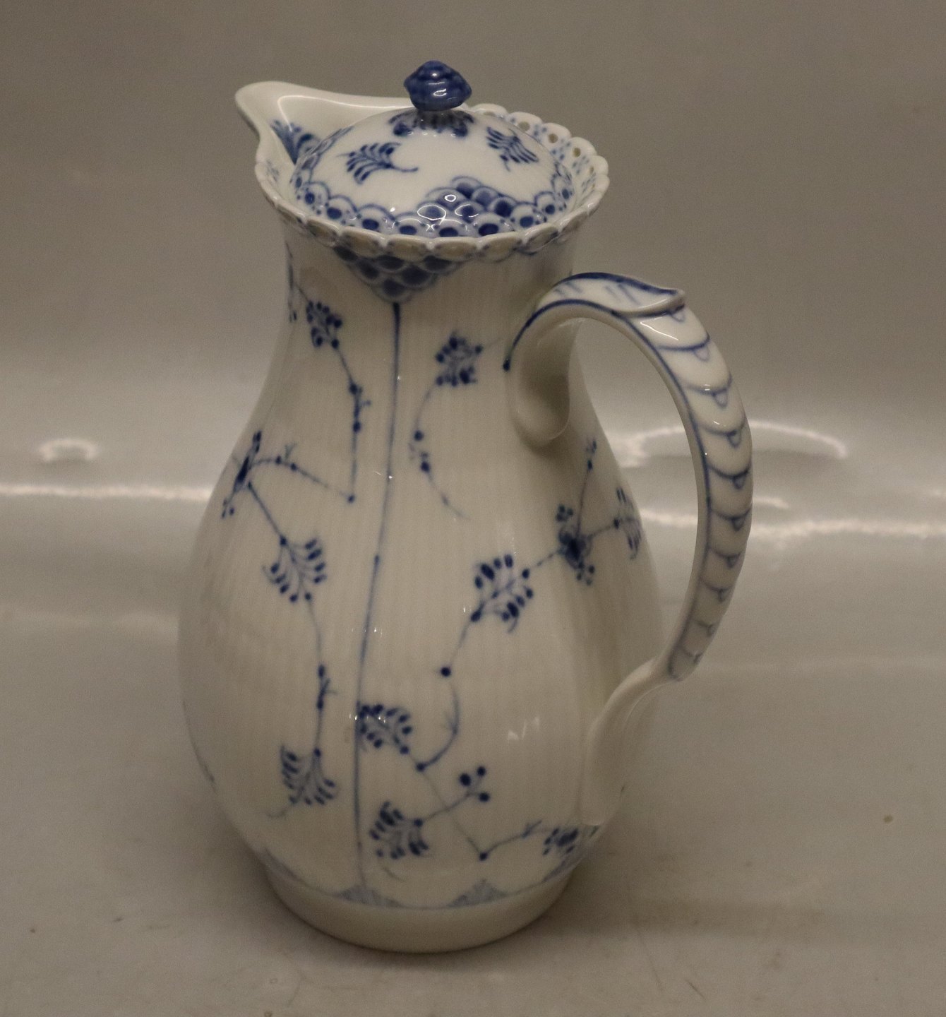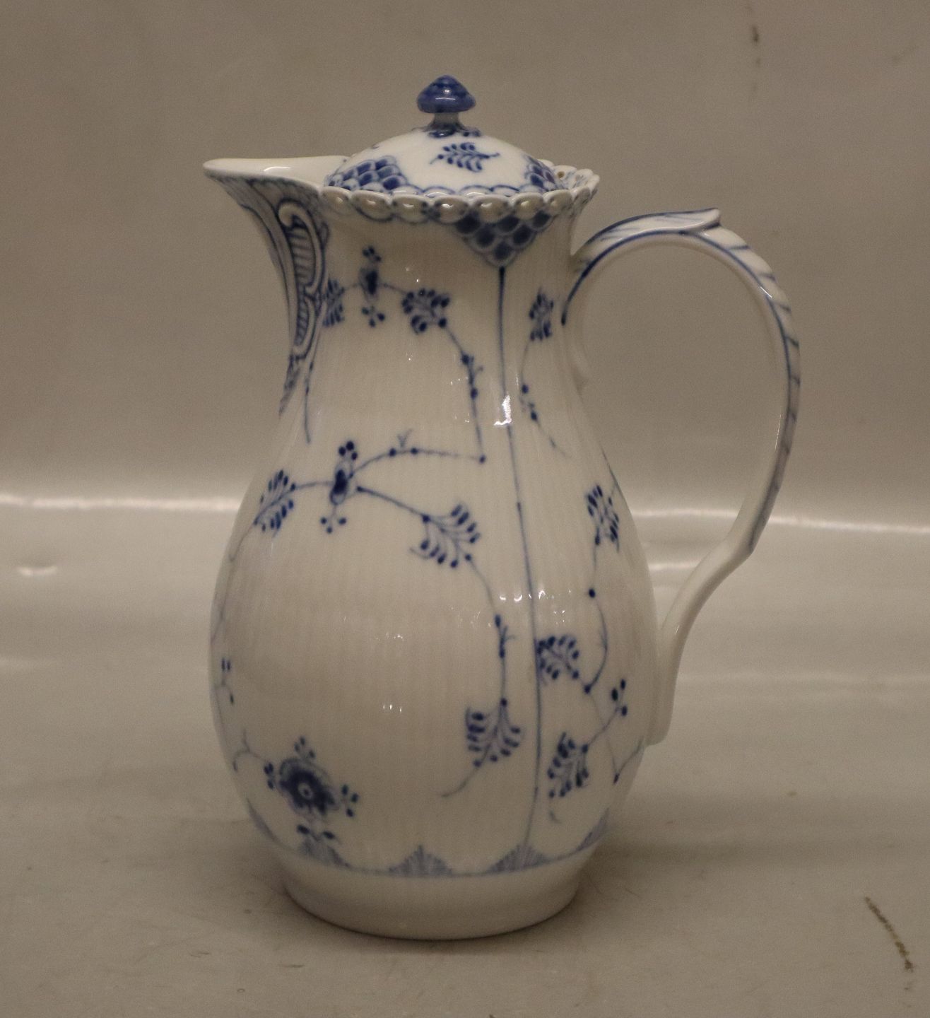 1026-1 Chocolate pot with lid ca 24 cm 0.96 liter Royal Copenhagen Blue Fluted Full Lace. In nice and mint condition, Voll Spitze