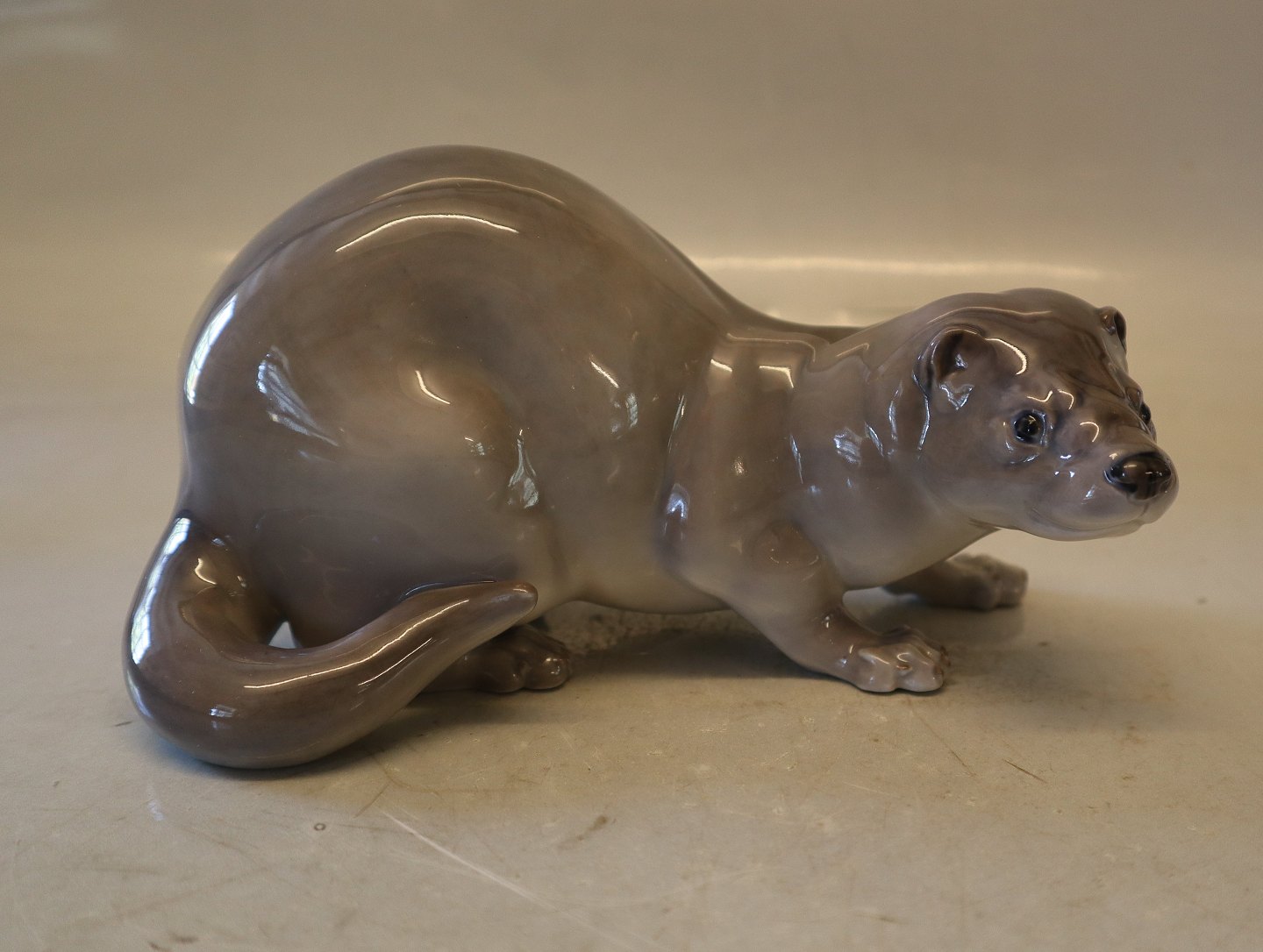 Beskrivelse: Kgl. figur fra Royal Copenhagen 4654 Grå mink 10 x 17 cm . I hel og fin stand Design Jeanne Grut