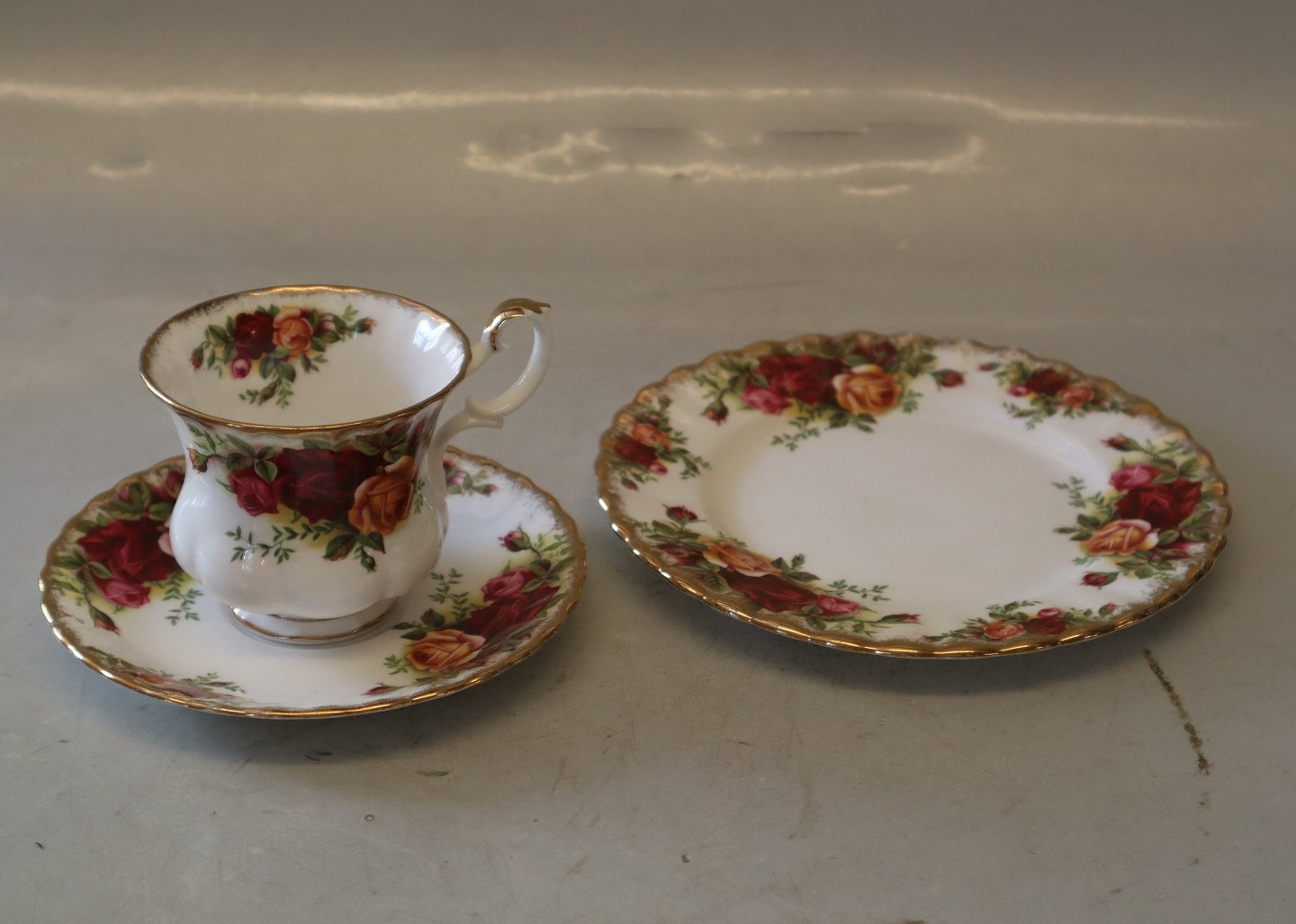 Coffee cup 6.5 cm & saucer 12.6 cm Royal Albert Old Country Roses Bone China England Landsbyrose. In good used condition