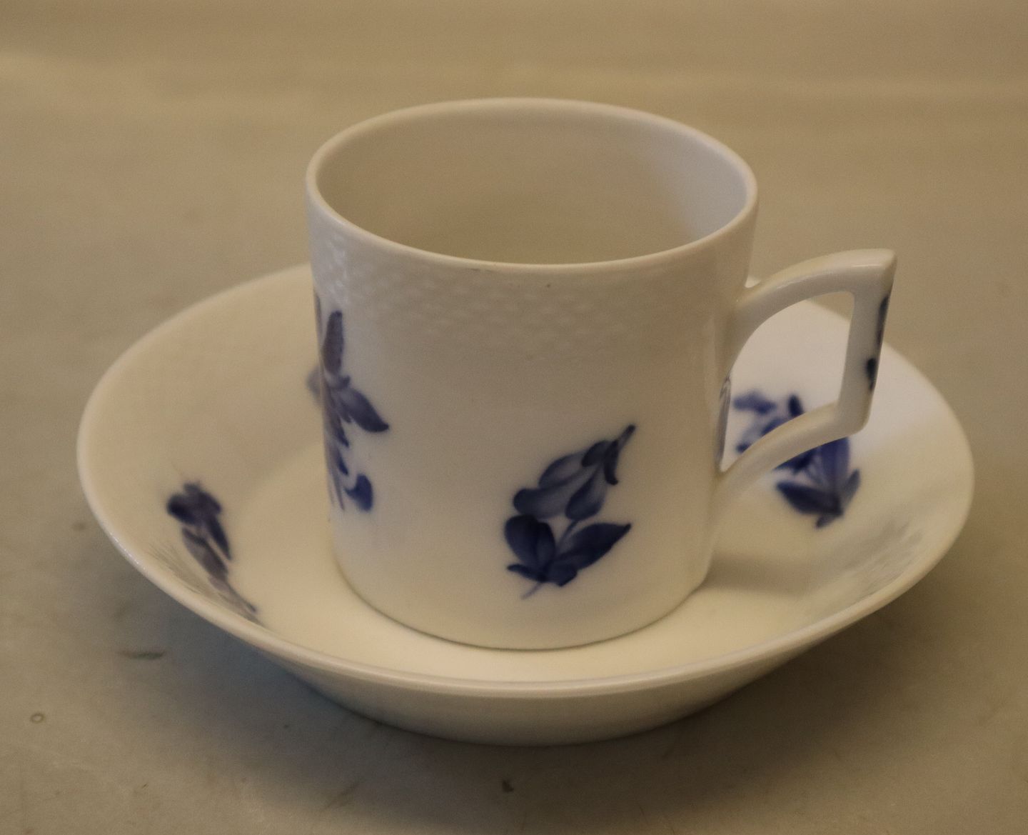 8043-10 Kop 6 x 6 cm, bægerform m/skål (underkop) 13.3 cm Kongelig Dansk Porcelæn Blå Blomst Flettet