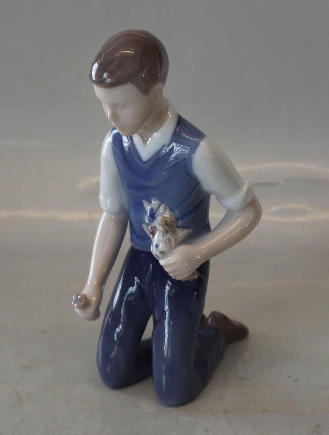 B&G 2346 Dreng med blomsterbuket 15 cm, Vita Thymann 1961 Bing & Grøndahl