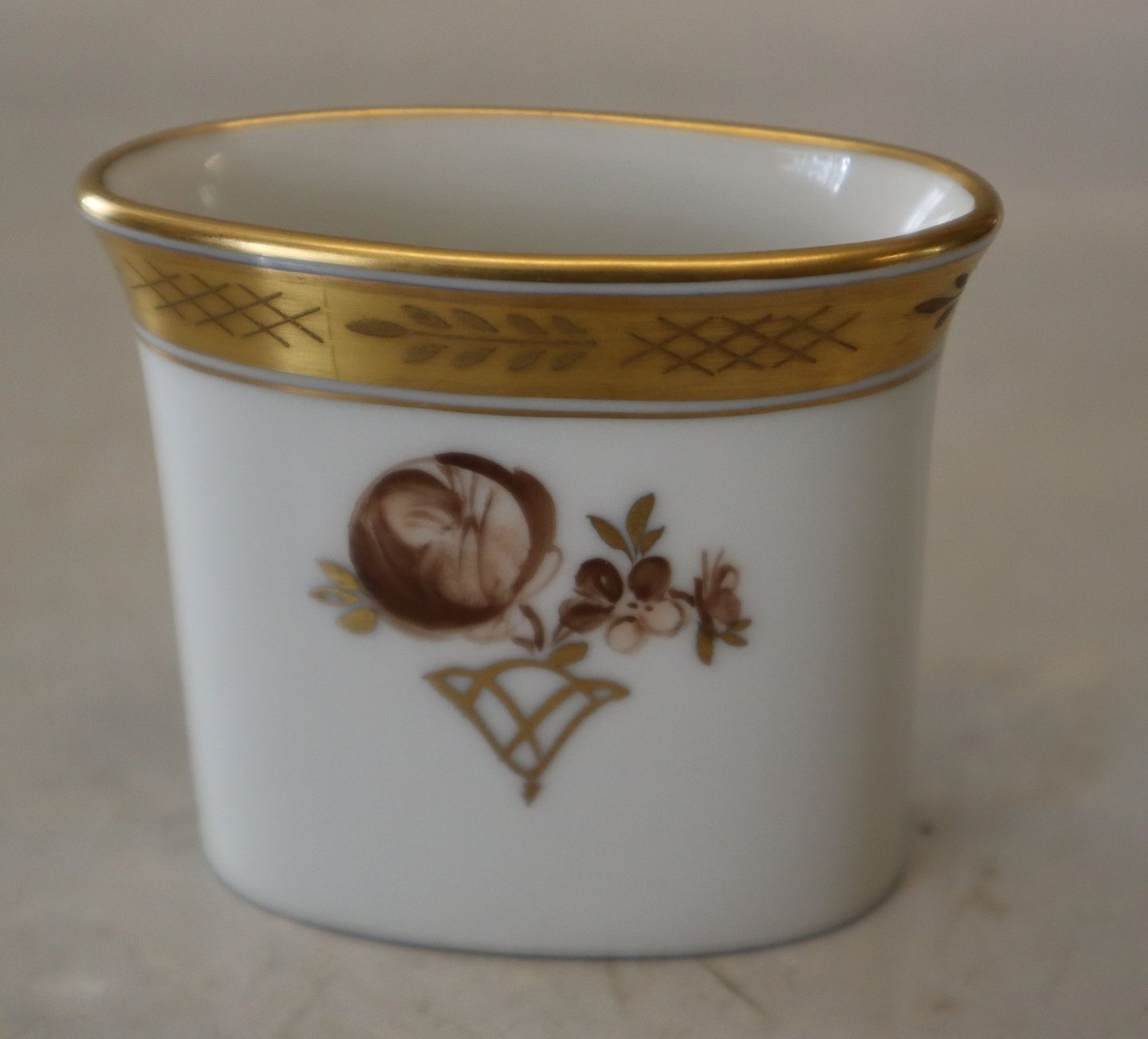 Kgl. 2849-595 Tandstikbæger 6 x 7 cm Royal Copenhagen Guld dekoration på hvidt porcelæn 1927. I hel og fin brugt stand Golden Basket