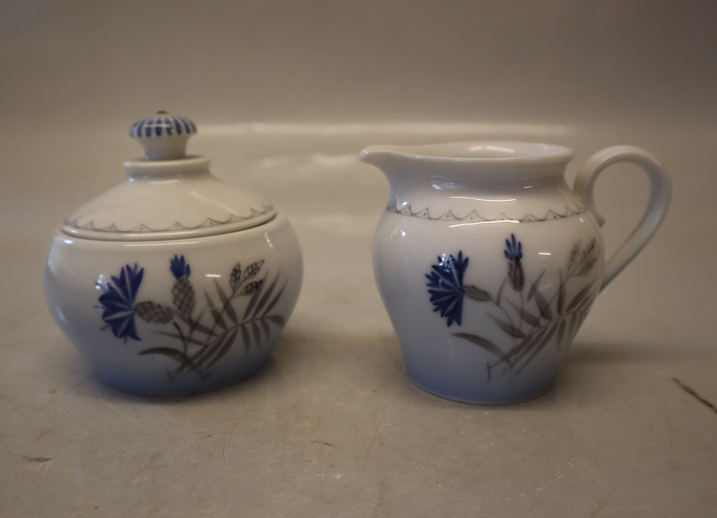 085 B Lille flødekande ca 7 cm Bing & Grøndahl Demeter Blå Kornblomst I fin og hel stand