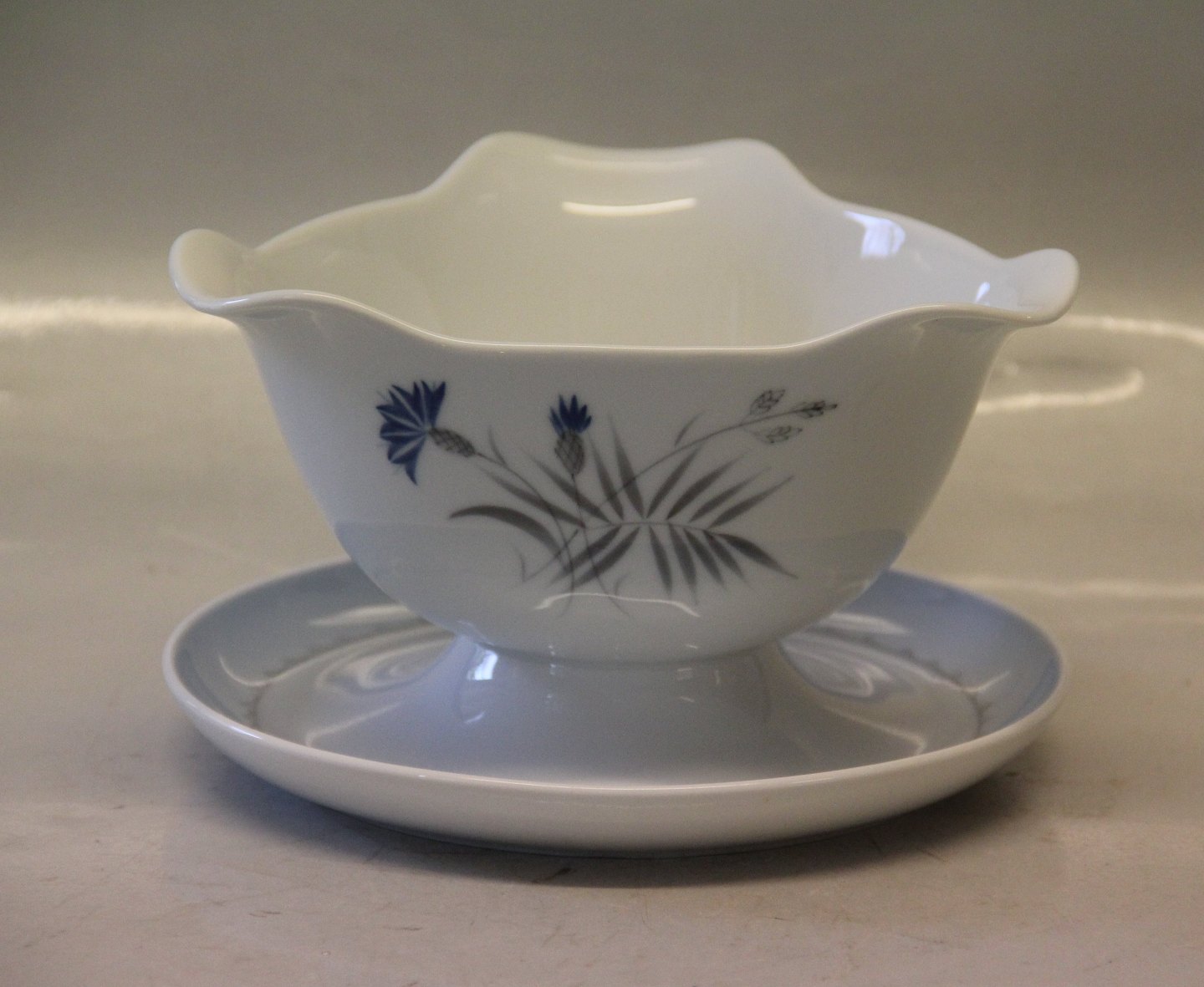 008 Sovseskål trekantet på rund fod ca 10.5 x 18 cm (311) Bing & Grøndahl Demeter Blå Kornblomst 008 Sauce I fin og hel stand