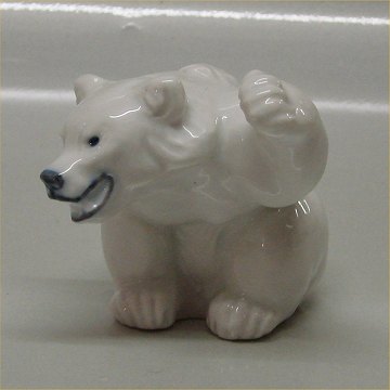 Kongelig Dansk Stentøj 233 (1003 233) Hvid isbjørneunge med løftet pote Knud Kyhn