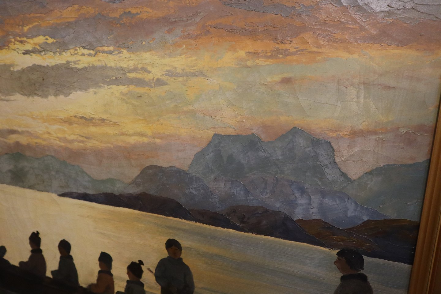 Beskrivelse: Maleri: Konebåd ved grønlandsk kyst. Olie på lærred 70 x 100 cm Sign. Emanuel A. Petersen.