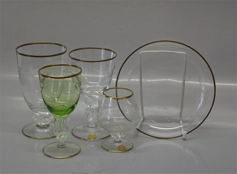 Beskrivelse: Mågeglas Lyngby glasservicce - drikkeglass med guldkant og slebne måger