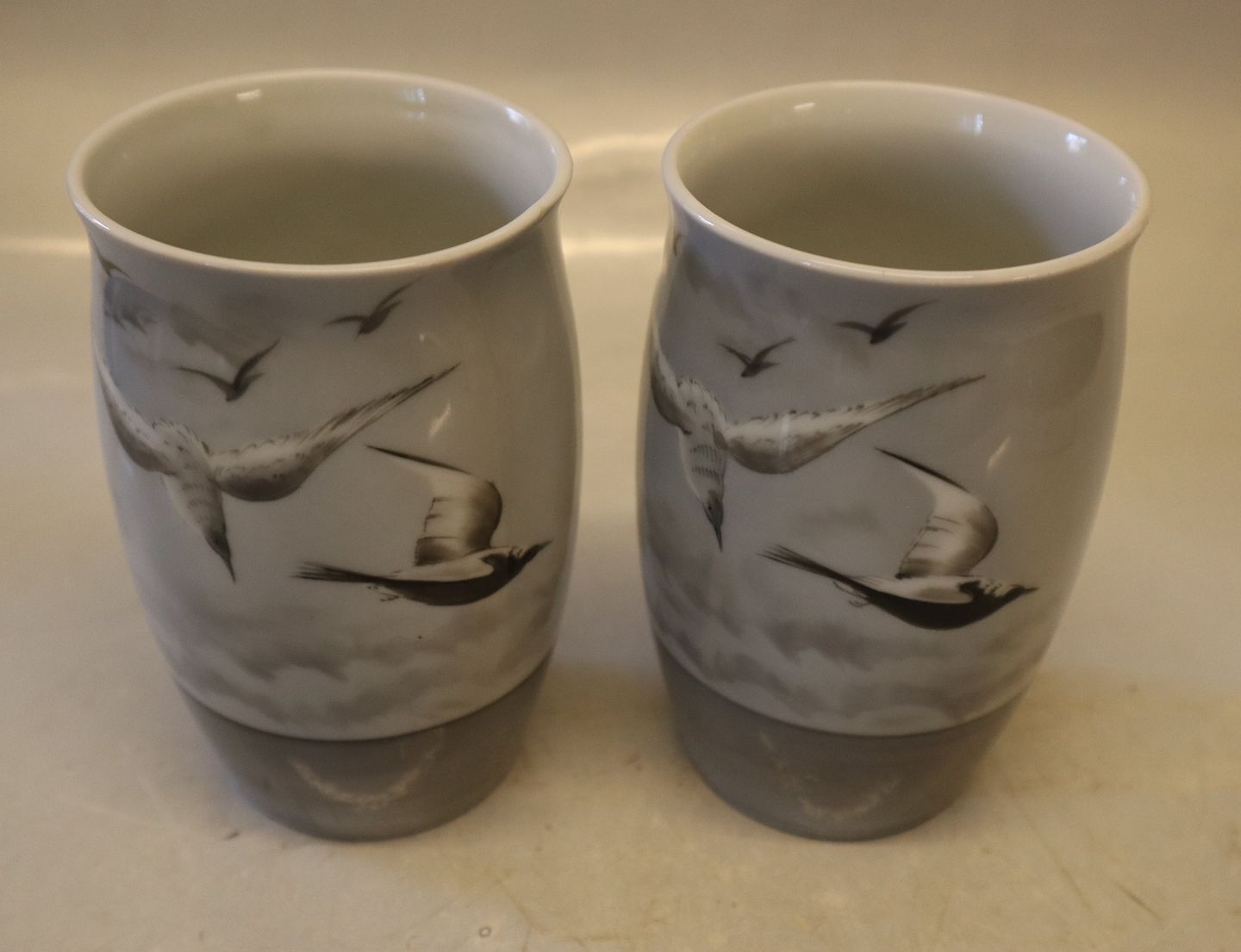 Beskrivelse: Par tyske? Heubach? 3562 Art Nouveau vaser med måger 11.5 cm Jugendstil Kender nogen stemplet? I hel og fin stand