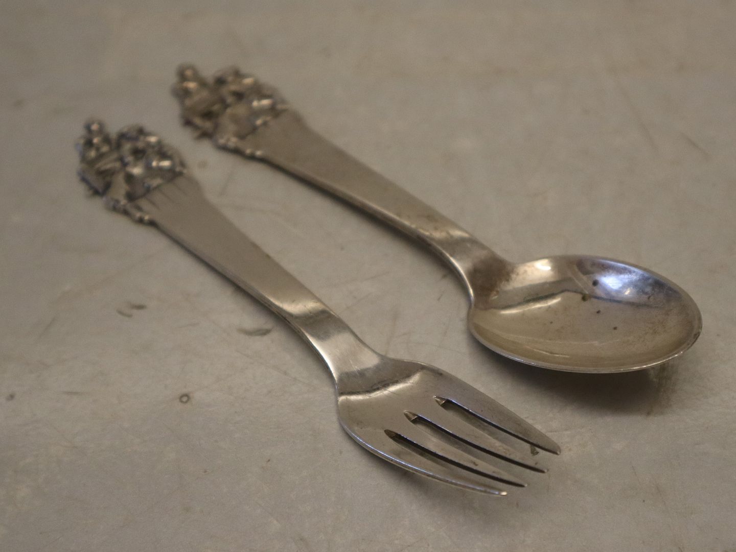H.C. Andersen Sølv børnebestik Ske og gaffel med Svinehyrden