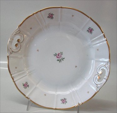 Bing & Grøndahl Roselil 101 Fad med hank 26,5 cm (304) Hvidt kantet porcelæn med bred guldkant og strøblomster i Henriette stil. Bing & Groendahl mønster på samme form som Offenbach I hel og fin stand
