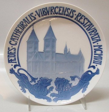 Beskrivelse: Bing & Grøndahl Mindeplatte #27 AEDES CATHEDRALIS VIBORGENSIS RESTAVRATA MCMVII. Comm. the restoration of the Viborg Cathedral. Designed by Jens Peter Dahl-Jensen. 23 cm CM27
