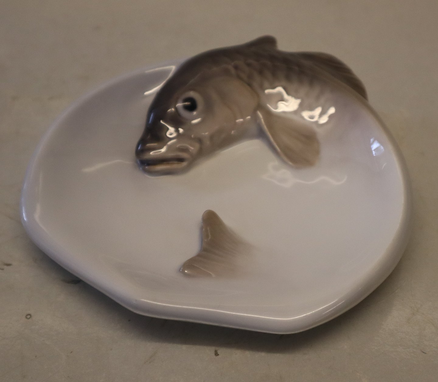 Description: Rare Royal Copenhagen Art Nouveau 619 RC Fish on tray Arnold Krogh 1905 15 cm. In nice and mint condition