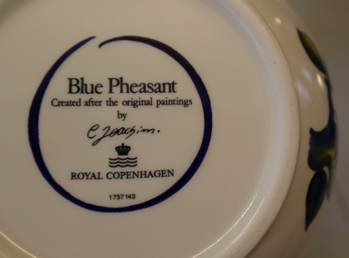 Blå Fasan Stor 143 Thekande 17 x 28 cm (1737143) Royal Copenhagen Fajance Chr Joachim