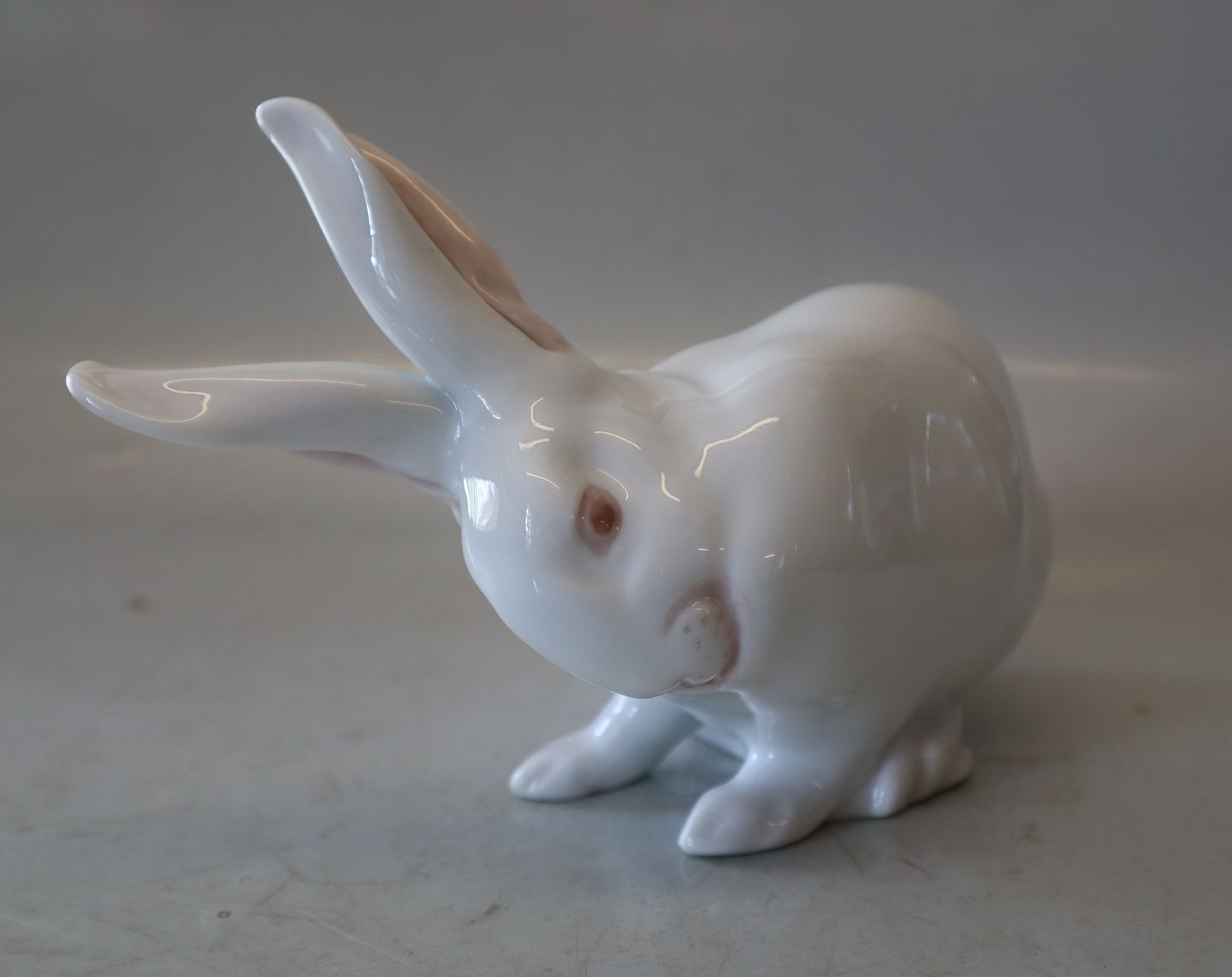 0378 Kgl. Hvid kradsende Kanin 13 x 19 cm Design Erik Nielsen 1902 EN