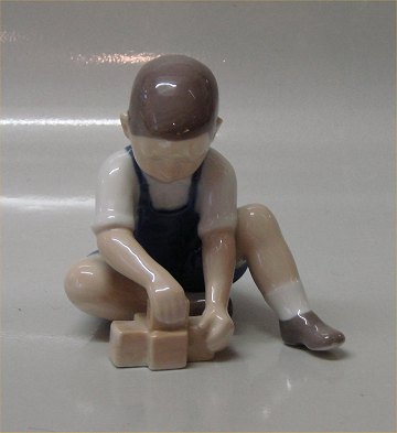 : Bing & Grøndahl B&G 2306 Lille dreng med legoklodser Sv. J 10 cm 1. I fin og hel stand.