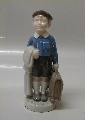 Beskrivelse: Kgl. figur fra Royal Copenhagen 4528 Juni - dreng med skoletaske 16 cm Design Hans Henrik Hansen 1894-1965. HHH 2.I hel og fin stand