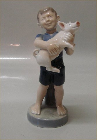 Beskrivelse: Kgl. figur fra Royal Copenhagen 4530 August - dreng med lille gris 16 cm Design Hans Henrik Hansen 1894-1965. HHH 1. sortering I hel og fin stand