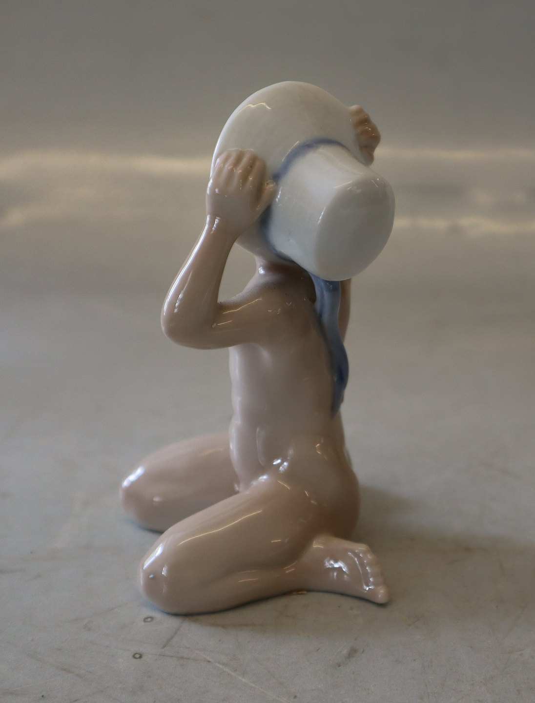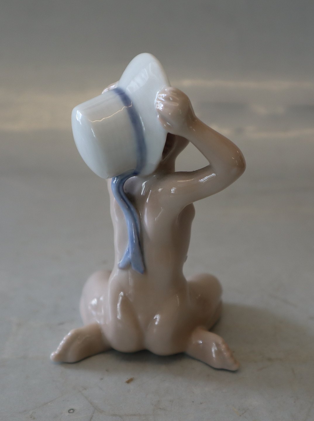 Sjælden Lyngby Porcelænsfigur Badedreng med sommerhat 11 cm