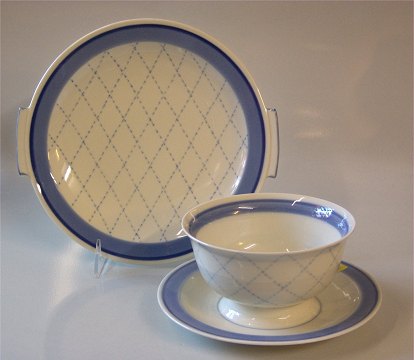 Prik B&G : Creme porcelæn, punkterede linier og bredt blåt bånd, form 635 SE LISTE