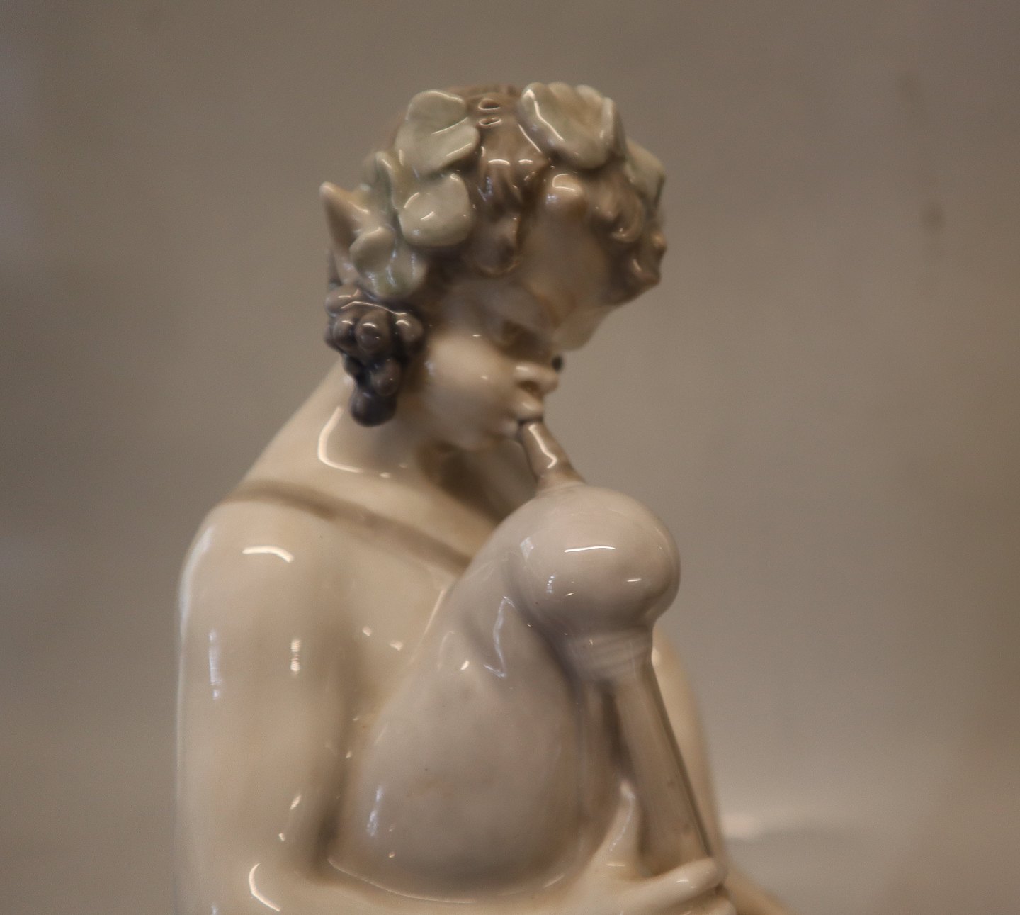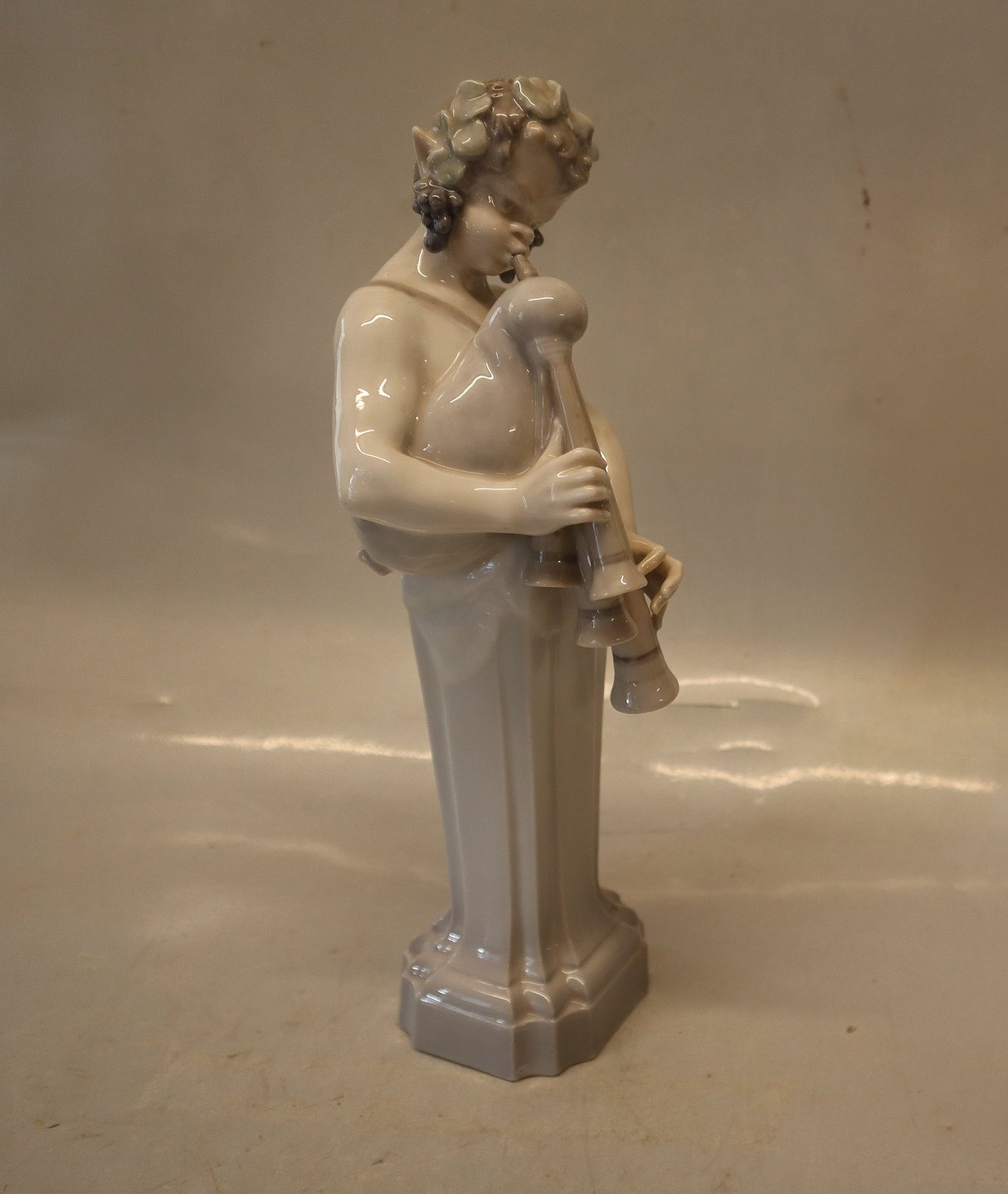 Beskrivelse: 2071 Kgl. Pan med sækkepibe 26 cm Chr. Thomsen 1920 2nd. Porcelæn fra Royal Copenhagen I hel og fin stand Faun Bacchus, Skovånd, Elver