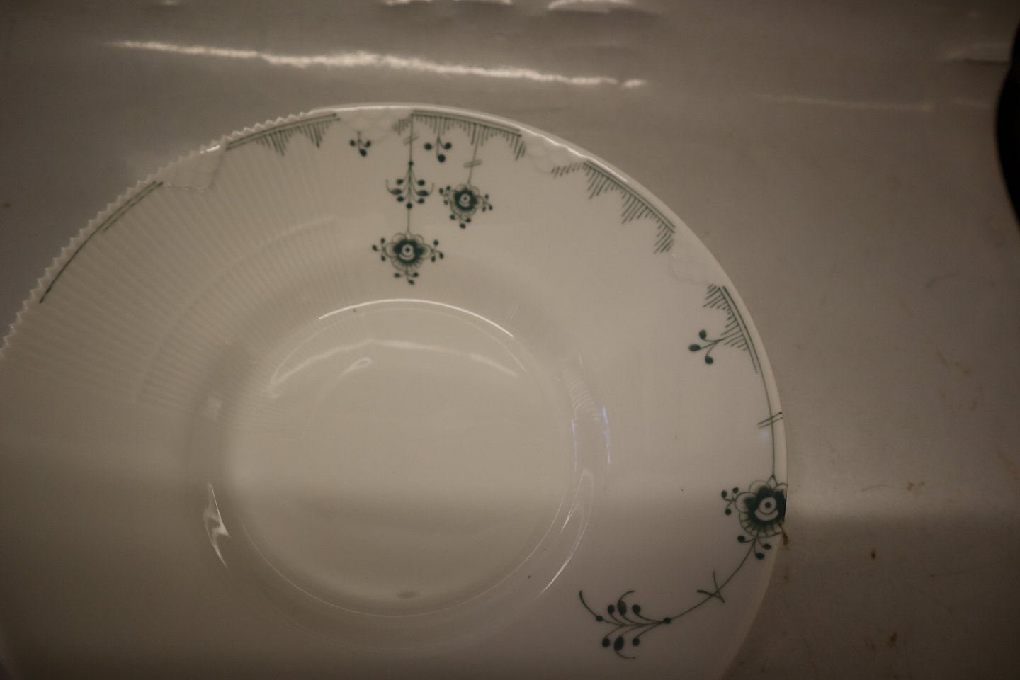 604 Stor dyb tallerken 6 x 24.5 cm Grøn Elements Royal Copenhagen Musselmalet. Muselmalet Grønt. I fin og hel stand. Passer godt sammen med andre blåmalede spise- og kaffestel. Design Louise Campbell