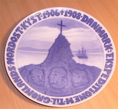 Title / English: Rock with a cross and three portraits with the names HOEG-HAGEN-MYLIUS ERICHSEN-BRONLUND (names of 3 explorers who died in Greenland). Inscription: DANMARK EKSPEDITIONEN TIL GRONLANDS NORDOST KYST (Danish Expedition to Greenland’s Northeastern Coast) 1906-1908.
