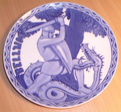 Kongelig Dansk Mindeplatte #159 Skt. Georg og dragen. 22 cm