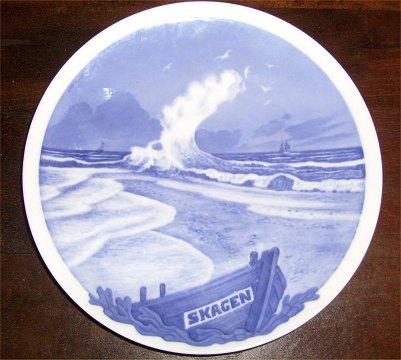 Beskrivelse: Skagen - Platte. Motiv fra stranden med båd betegnet SKAGEN (the skaw)