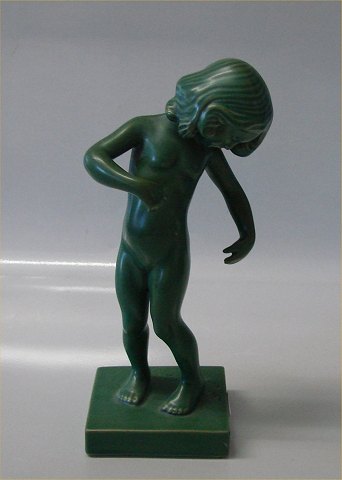 Beskrivelse: Jadegrøn pige 888 Venus Kalipygos Design Kai Nielsen 21 cm Grønt Keramik fra P. Ipsens Enke Kgl. Hof. Terracottafabrik 1843-1955