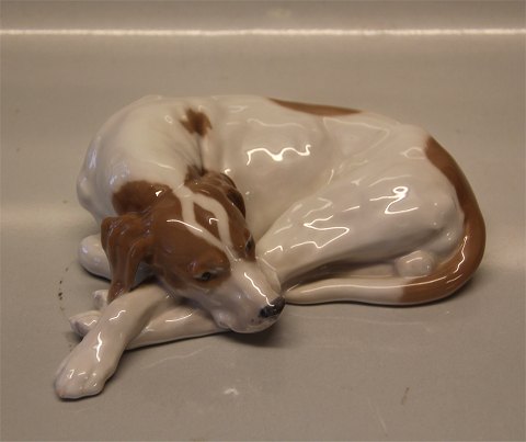 Beskrivelse: Kgl. figur fra Royal Copenhagen 1634 Pointer liggende Lauritz Jensen 1914 6 x 20 cm 1. sortering. I hel og fin stand