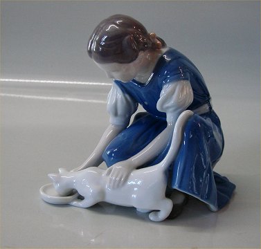 : Bing & Grøndahl Pige med kat 1745 Ingeborg Plockross Irminger 15 cm I fin og hel stand.
