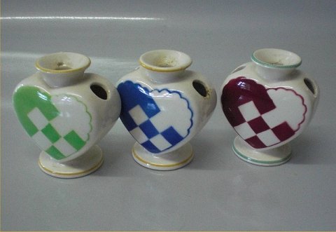 Beskrivelse: Royal Copenhagen Aluminia fajance hjertevaser - hjertestager - Julehjerte Kuvert vaser Hans Henrik Hansen