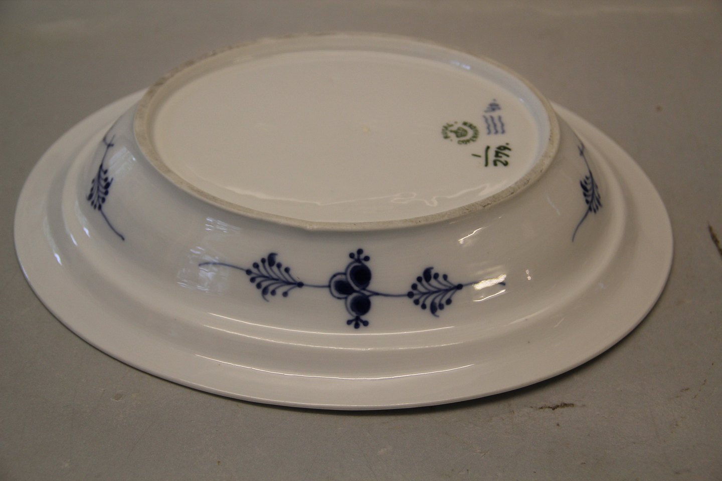 Kongelig Dansk Porcelæn Musselmalet 279-1 Ragoutfad/lågfad, ovalt, 22 x 27 cm uden låg