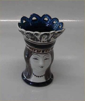 Beskrivelse: Royal Copenhagen Aluminia fajance 306-3568 "Dronning" blå fra skaksættet af Doreen Middelboe 11 cm