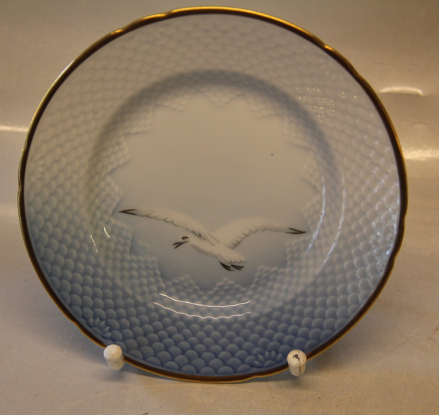 Beskrivelse: Bing & Grøndahl Mågestel med guldkant 028 a